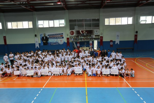 Gençlik Hizmetleri ve Spor İlçe Müdürlüğü Kapalı Spor Salonu’nda gerçekleşen törende, spor malzemesi dağıtımı sırasında sporcuların aileleri de katıldı.