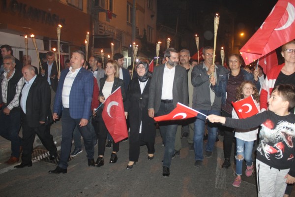 29 Ekim Cumhuriyet Bayramı coşkusu, gece düzenlenen fener alayı yürüyüşü ve gösterilerle Gürsu sokaklarını aydınlattı.