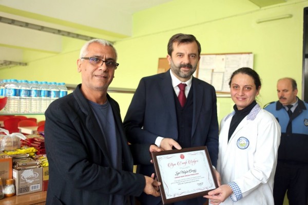 Lokman Hekim Mesleki ve Anadolu Lisesi kantin işletmecisi Nilgün Cengiz’e ayın esnafı sertifikası takdim edildi.