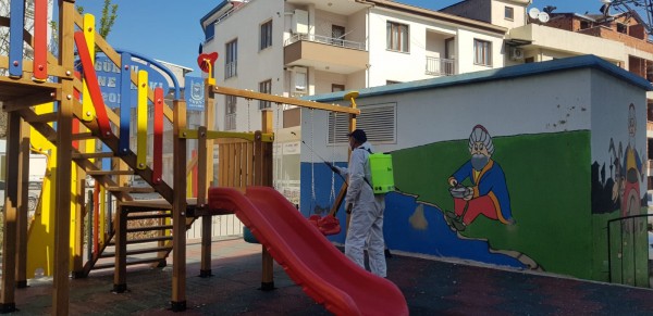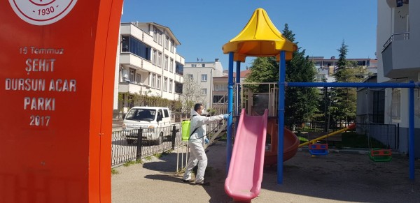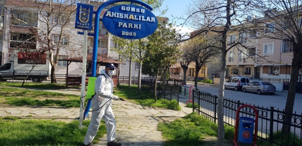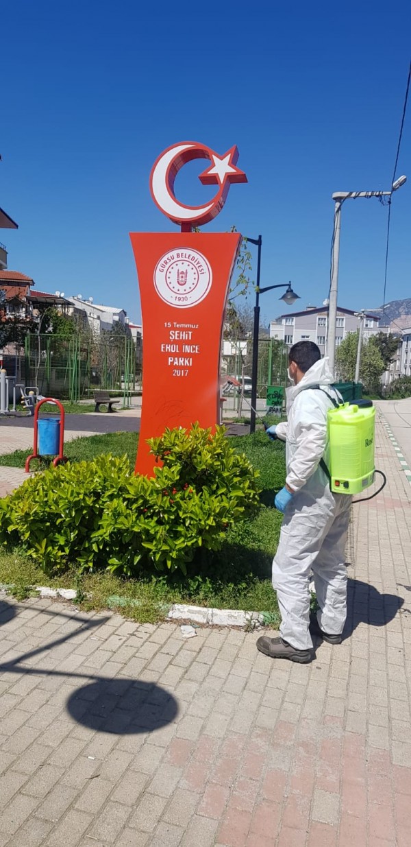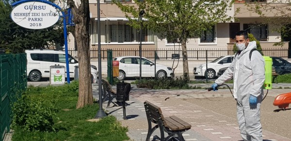 Gürsu Belediyesi, ilçede bulunan tüm parklarda başlatılan dezenfekte çalışmasıyla corona virüse karşı korunma önlemlerini yoğun olarak sürdürüyor.