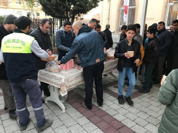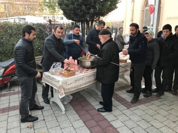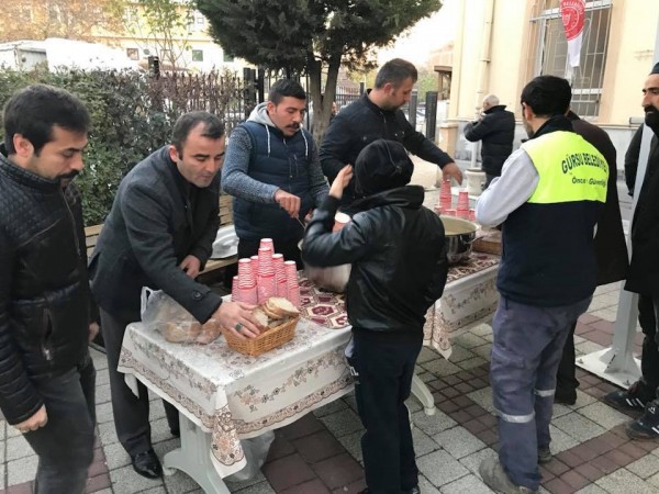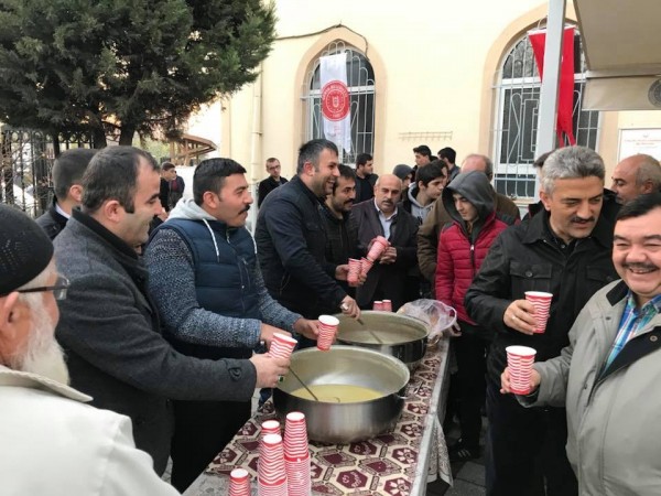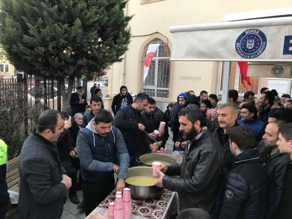 Gürsu Belediye Başkanı Mustafa Işık, ilçe protokolü ve sivil toplum kuruluşlarının katılımıyla, pazar sabahlarında kılınan namazın ardından ilçe halkıyla birlikte çorba içiliyor.