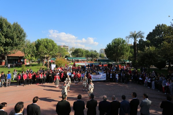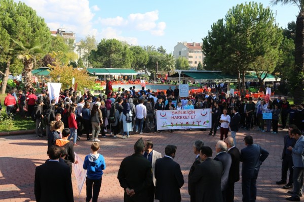 Gürsu Kent Meydanı’nda düzenlenen etkinlikte, öğrenciler “Sağlık İçin Hareket Et”, “Akıl Bilgi ile, Ruh Sevgi İle Sakinleşir” ve benzeri sloganların yazılı olduğu pankartlar taşıdı.