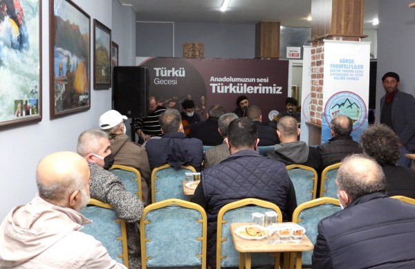 Gürsu Belediyesi Kültür İşleri Müdürlüğü tarafından organize edilen ‘Anadolumuzun Sesi Türkülerimiz’ programında Gürsu Yusufelililer Dernek Lokali’nde türküseverler unutulmaz bir gece yaşadı. Düzenlenen gecede sahne alan sanatçıların ezgileri Gürsulular tarafından büyük bir ilgi ile dinlendi. Gürsu Belediye Başkanı Mustafa Işık’ın katıldığı müzik ziyafetinin sunulduğu gecede ‘Ervahı Ezelden, İşte Gidiyorum, Pınar Başı Bulanır ve Uzun İnce Bir Yoldayım’ gibi halk müziğinin sevilen eserleri seslendirdi. Anadolu’nun dört bir yanından türküler seslendiren ozanlar performanslarıyla dinleyicilerden tam not aldı.