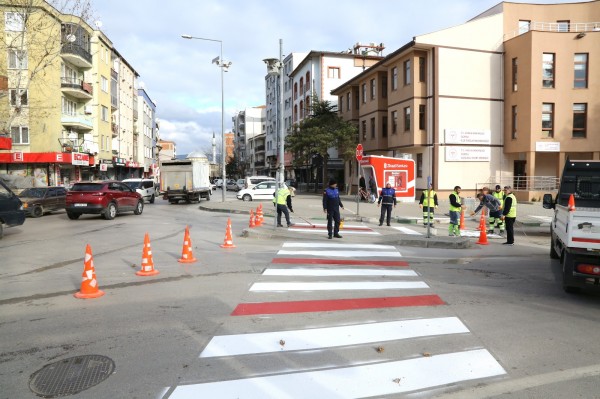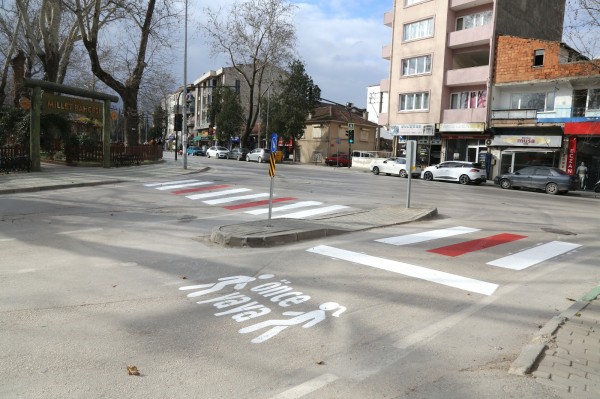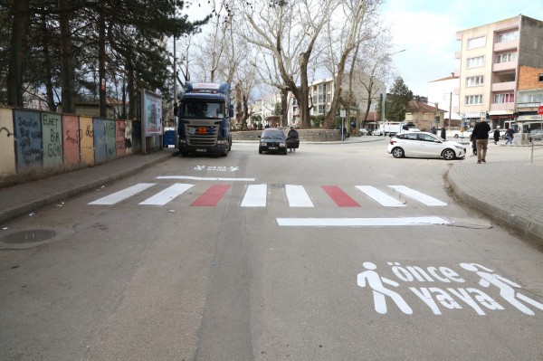 Büyükşehir Belediyesi’nin koordinasyonunda, ana caddelerde yapılan çalışmalarla, yayaların caddelerde karşıdan karşıya geçiş üstünlüğünü belirten farkındalık uyarı işaretleri de oluşturuldu.