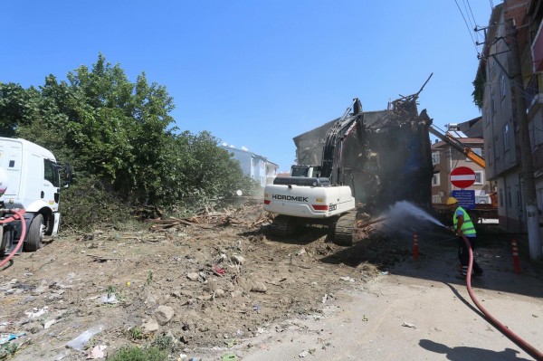 Gürsu’daki metruk binalar Gürsu Belediyesi’nce başlatılan çalışmayla yıkılıyor.