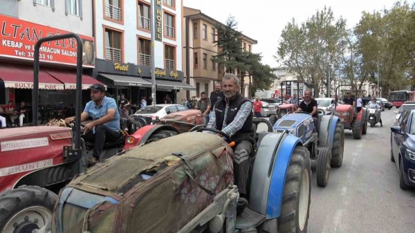 Traktörleri ile Korteje Katıldılar