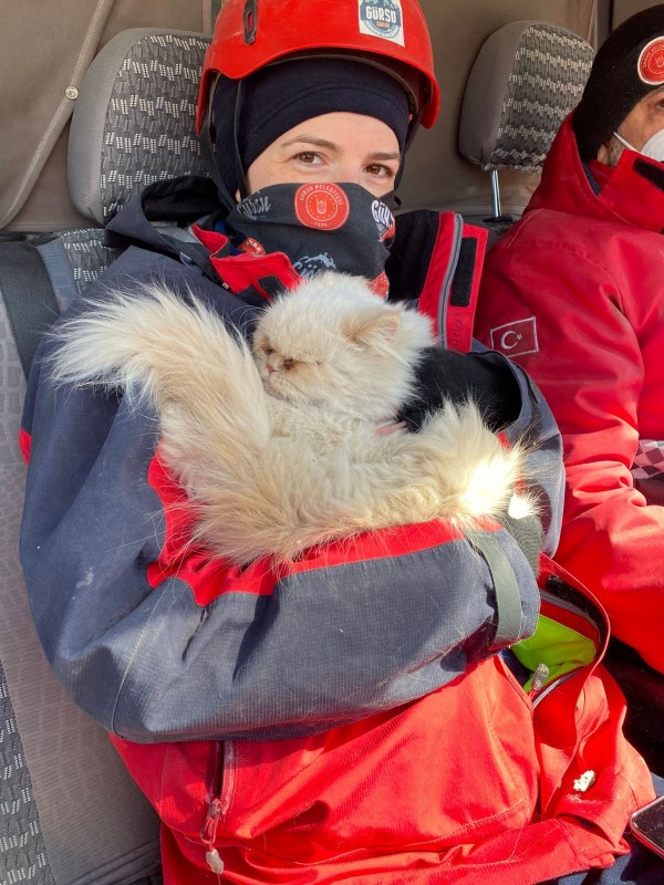 Günlerdir enkaz arama kurtarma faaliyetlerine katılan ve depremin ilk anından itibaren durmaksızın çalışan, canlı kurtaran, cenaze çıkaran Gürsu Arama ve Kurtarma Ekibi GüRAK, Kahramanmaraş’ta Mersinli Apartmanı’ndaki çalışmaları sırasında bir kediyi daha canlı çıkardı. Deprem anında kedisini kurtarmak için binaya giren kadının bir daha çıkamadığı düşünülüyor. Gürsu Ekibi, kedinin ardından enkaz altında sahibini arıyor.