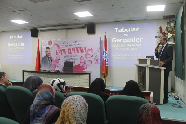 “Erken Tanı ve Teşhis Hayat Kurtarır” konulu seminerde konuşan Op.Dr. Can Başaran, kanserde erken teşhisin önemini vurguladı. Kadınlarda yaygın olarak görülen cilt ve tiroid kanserleri hakkında da bilgiler sunan Başaran, meme kanserinde kendi kendine elle muayenenin, kadınların bedenlerindeki değişimleri takip etmelerinin çok önemli olduğunu söyledi. Başaran, tüm kadınları sağlıkları konusunda duyarlı olmaya çağırdı ve Belediye ile Gürsu İlçe Sağlık Müdürlüğü işbirliğinde ücretsiz olarak yapılan kanser tarama hizmetlerinden faydalanmalarını önerdi.