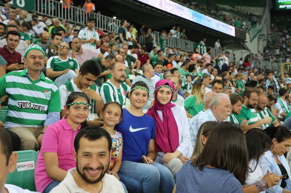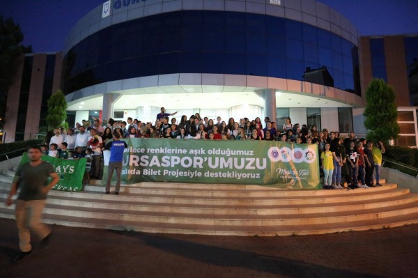 “Ailece renklerine aşık olduğumuz Bursasporumuz’u Askıda Bilet Projesiyle Destekliyoruz” yazılı pankartla Bursaspor – Beşiktaş maçını izleyen gençler, sahada futbol izleme keyfini yaşadı.
