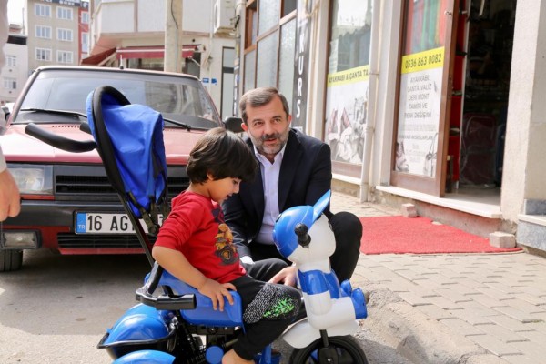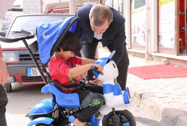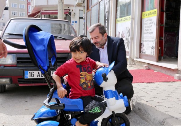 Gürsu’da yaşayan Muhammed Emin’in en büyük hayallerinden birisi Belediye Başkanı Mustafa Işık ile tanışmaktı. Belediyenin Sosyal Yardım İşleri Müdürlüğü’ne sesli mesajlar atarak bu talebini ileten Muhammed Emin’in ses kayıtları Başkan Işık’a ulaştı. Talebi keyifle karşılayan Başkan Işık, Muhammed Emin’in en büyük isteklerinden birisi olan bisikleti de alarak onu evinde ziyaret etti. Karşısında hem Başkan Işık’ı hem de bisikleti görünce çok mutlu olan Muhammed Emin, teşekkür etti. Muhammed’i mutlu etmenin çok güzel olduğunu söyleyen Gürsu Belediye Başkanı Mustafa Işık, “Bir çocuğun mutluluğu, gözlerindeki ışık her şeye bedel. Bu yüzden Muhammed’in bu isteğini kıramazdık. Sesli mesajları o kadar sevimliydi ki, mesai arasında onu bizzat görmek istedim, umarım bisikleti ile güzel zamanlar geçirir” diye konuştu.