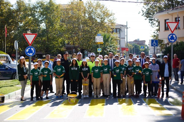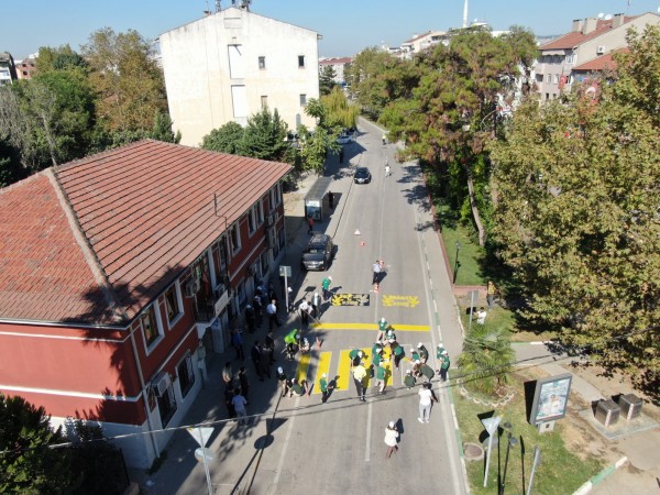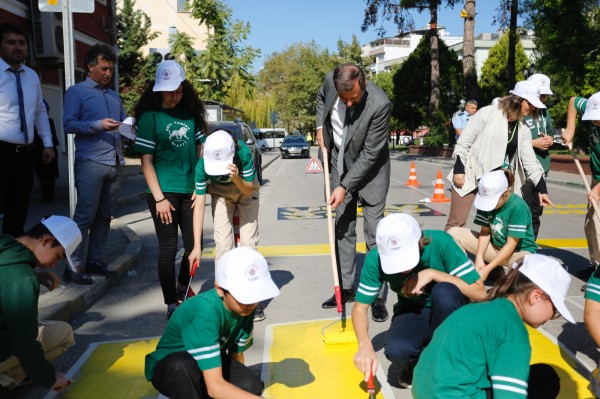 Trafikte yaya önceliği bilincinin oluşturulması amacıyla, Gürsu’daki yaya yolları öğrenciler tarafından boyandı.