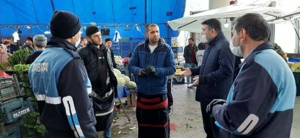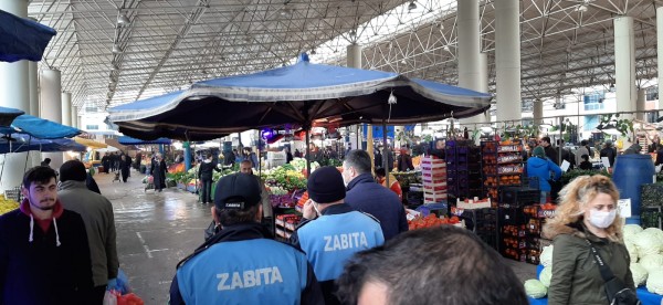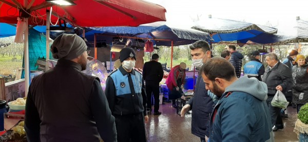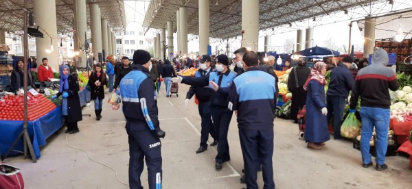 Zabıta ekipleri, İçişleri Bakanlığı genelgeleri gereği; tezgah mesafeleri, hijyen ve çizgi denetimleri, açıkta ürün satışı konularında, pazar esnafına bilgilendirme yaptı. Ekipler, çadırlar kaldırılarak daha ferah bir ortam kazandirilan kapalı pazar yerinde alışveriş yapan vatandaşları sosyal mesafelerini korumaları konusunda uyarırken, 65 yas üstü vatandaşlar da evde kalmalari hususunda anonslar yapılarak ikaz edildi.