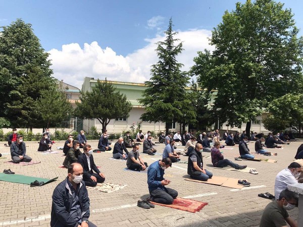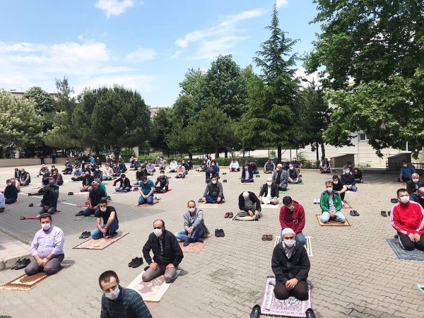 Cami ve okul bahçelerinde kılınan namazlar sırasında cemaatlerin sosyal mesafe kuralına uyularak oluşturulması, yeni normallerimizin nasıl olacağını da gözler önüne serdi.