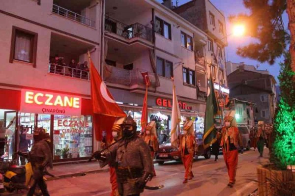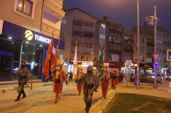 Salgından korunma tedbirlerine dikkat ederek, maske ve eldivenleriyle, sosyal mesafelerini koruyarak, Atatürk Caddesi boyunca gösteri sunan Ay Yıldız Mehteran Takımı’nın gösterisi Şehit Cüneyt Yıldız Caddesi’nde son buldu.