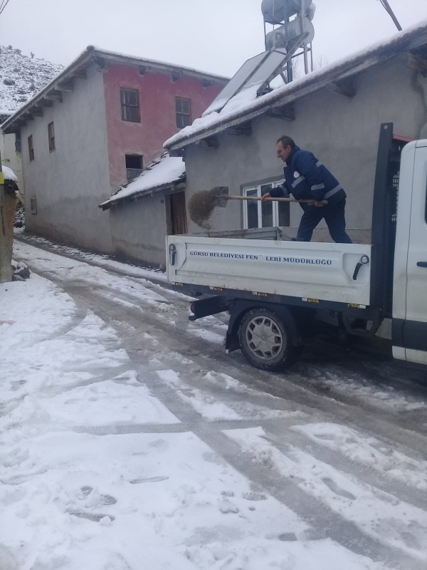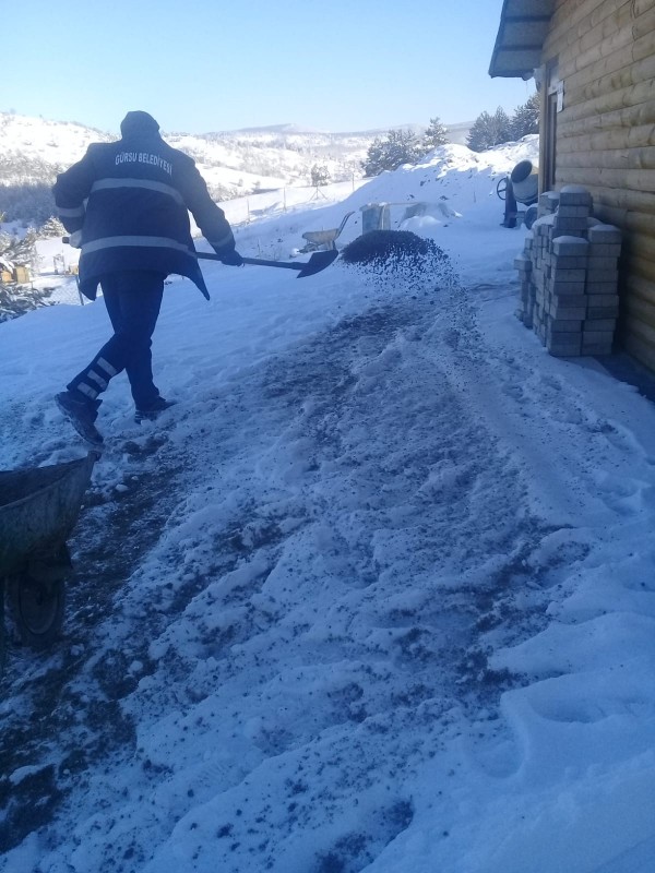 Gürsu Belediye Başkanı Mustafa Işık, “Henüz ilçe merkezimizde gerçekleşmeyen kar yağışı, ilçemizin dağ yollarında ve mahallelerinde etkisini göstermekte. Dağ bölgemizde yer alan; Ericek, Dışkaya ve İpekyolu Mahallelerimiz’e ulaşımın aksamaması ve hemşehrilerimizin kış koşullarından olumsuz etkilenmemesi için yollarda tuzlama çalışmalarımızı sürdürüyoruz. Adrenalin Parkımız’a da ulaşımın aksamaması için çalışmalarımız yoğun olarak sürmekte” dedi.