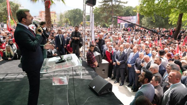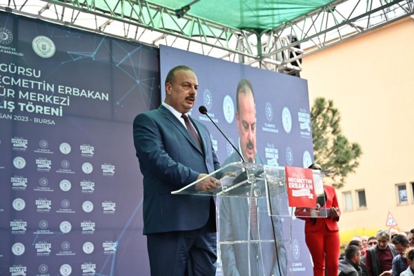 Törende konuşan Sanayi ve Teknoloji Bakanı Mustafa Varank, Kültür Merkezi’nin Gürsu’ya değer katacak, gençleri geleceğe hazırlayacak önemli bir yatırım olduğunu vurguladı. ülkenin kalkınmasının yolunun nereden geçtiğini bildiklerini belirten Bakan Varank, “Biz, 21 yıldır, taş üstüne taş koymanın bu ülkeye hizmetleri kazandırmanın, Bursalı hemşehrilerimizi en güzel yatırımlarla buluşturmanın derdinde olduk. Onun için gayret gösteriyoruz. İşte bugün açılışını yaptığımız Kültür Merkezi de, okuma salonlarıyla, kütüphaneleriyle, etkinlik alanlarıyla hem ilçemize hem buradaki vatandaşlarımıza, hem de buradaki genç kardeşlerimize hizmet edecek. Burada 24 saat açık bir kütüphanemiz olacak. çay kek bedava olacak. Burada gençlerimiz gelecekler, ders çalışacaklar, geleceğe kendilerini hazırlayacaklar. Biz sadece bugünü kurtarmanın derdinde değiliz. Biz Türkiye’yi muasır medeniyetler seviyesinin üzerine çıkarmanın derdindeyiz. Onun için 21 yıldır yaptığımız gibi inşallah önümüzdeki dönemde de Sayın Cumhurbaşkanı’mızın liderliğinde yolumuza kararlılıkla devam etmemiz lazım. Bu Kültür Merkezi’nin adı Prof. Dr. Necmettin Erbakan. Merhum Erbakan Hocamız çok vizyoner bir insandı. Dava adamı bir insandı. Bugün bu açılışı yaparken Ankara’da ne oldu biliyor musunuz? Erbakan Hocamız’ın hep hayali olan, Türkiye ilk defa kendi jet motorlu uçağını bugün Ankara’da uçurdu. Türkiye’nin otomobilini yapmak Erbakan Hocamız’ın hayaliydi. İşte Togg’u biz gerçekleştirdik. Türkiye’nin tankını yapmak Erbakan Hocamız’ın hayaliydi, Altay tankını ordumuza teslim ettik. Türkiye’nin uçağını yapmak Erbakan Hocamız’ın hayaliydi. İşte bugün jet motorlu uçağımızı uçurduk. Biz bu ülkeyi kalkındırmanın, bu ülkeyi kendi ayakları üzerinde tutmanın yolu nereden geçiyor bunu gayet iyi biliyoruz. İnşallah yolumuza aynı kararlılıkla devam edeceğiz. ” dedi.