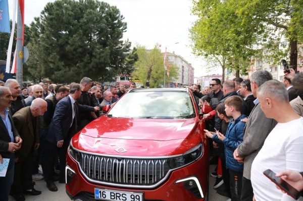 Türkiye’nin ve Bursa’nın gururu Togg otomobilinin de sergilendiği açılış töreninde, Gürsulular aracı inceleme olanağı buldu.
