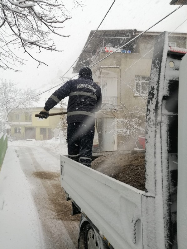 İlçemizde etkisini göstermeye başlayan yoğun kar yağışı ile birlikte hemşehrilerimizin ulaşımının aksamaması için ekip arkadaşlarımız kapanan yollarımızı bir bir açarken bir yandan da olası olumsuzlukların önüne geçmek için tuzlama çalışmalarına devam ediyor.