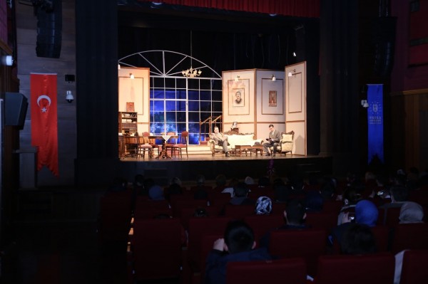 Kültür Sanat Kenti Gürsu’da perde aralandı. Hemşehrilerimizle beraber Büyük Şehir Tiyatrosu’nda yazar Hüsrev’in başından geçen trajik hikayesinin sahnelendiği ‘’Bir Adam Yaratmak’’ oyunundaydık.