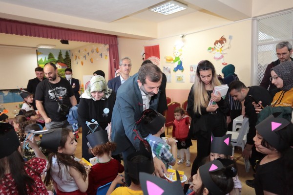 çeşitli etkinliklerle misafirlerini ağırlayan minikler program sonrası günün hatırası olarak protokol üyeleriyle birlikte fotoğraf çekildi.