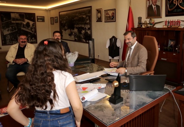 Başkanımız Mustafa Işık; Adaköy muhtarımız, Okul müdürümüz ve minik öğrencilerini belediyemizde misafir edip hediyelerini verdik. çizdikleri resimleri bize hediye eden öğrencilerimize okul yönetimine ve muhtarımıza ziyaretleri için teşekkür ederiz.