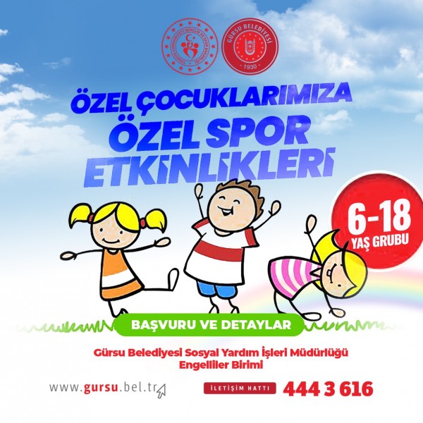 Gürsu Belediyesi, Gürsu İlçe Spor Müdürlüğü ile beraber ortaklaşa hazırladığı yeni proje ile Gürsunun özel eğitim alan çocuklarına özel, spor etkinlikleri yaptıracak. özel eğitim alan çocuklar gönüllerince spor aktivitesi yapabilecek.