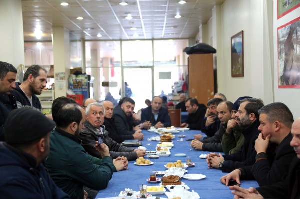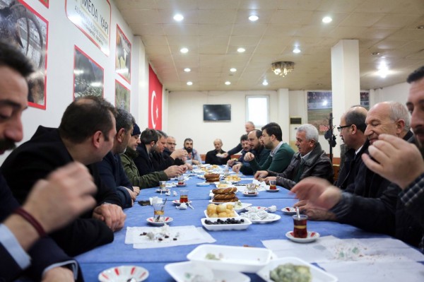 ”Sabah sohbetlerinde esnaf buluşmaları” sloganıyla, Belediye meclis üyeleri ve birim müdürleriyle esnaf ziyaretinde bulunan Başkan Işık, esnaf ve halkla birlikte kahvaltı yapıyor.