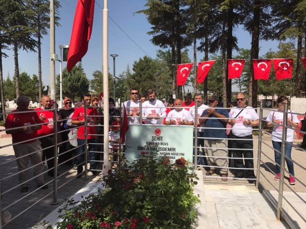 Başkan Işık, “Devlet Kuran Sultanlardan, Devlet Kurtaran Şehide Yolculuk” sloganıyla, Bursa’dan bisikletiyle yolcu ettiği Yasin Karadavutla, şehidimiz ömer Halisdemir’in kabristanında dua etti.