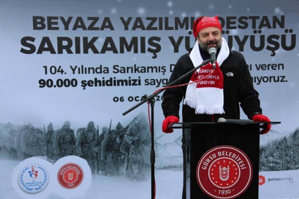 Gürsu Belediye Başkanı Mustafa Işık, “Soğuk ve karlı vatan toprağımızın bağrına bastığı,vatan uğruna canlarını feda ederek Sarıkamış’ta destan yazan şehitlerimizi minnet ve saygıyla anıyoruz. Tarihimizin en önemli kahramanlık destanlarından olan Sarıkamış Destanı’nını yazan 90 bin şehidimizin ve tüm şehitlerimizin kanlarıyla sulanan vatanımıza ilelebet sahip çıkmak da bizlerin ve gelecek nesillerin görevi. Gençlerimizin tarih bilinciyle, bu topraklar için ödenen bedellerin kıymetini bilerek, vatan sevgisiyle yetişmesi büyük önem taşımakta. Gençlerimizin yoğun katılımıyla gerçekleştirdiğimiz bu anma programıyla, bugün hep birlikte Sarıkamış ruhunu yaşadık” dedi.