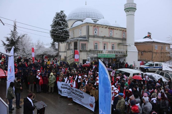 Soğuk hava ve kar yağışına rağmen vatandaşların yoğun katılımıyla, dualarla gerçekleştirilen yürüyüşe; Gürsu Kaymakamı Mustafa Koç, Bursa Gençlik ve Spor İl Müdürü Hüseyin Uysal, Bursa ve Gürsu protokolü, sivil toplum kuruluş temsilcileri, muhtarlar, gençler ve ilçe halkı katıldı.
