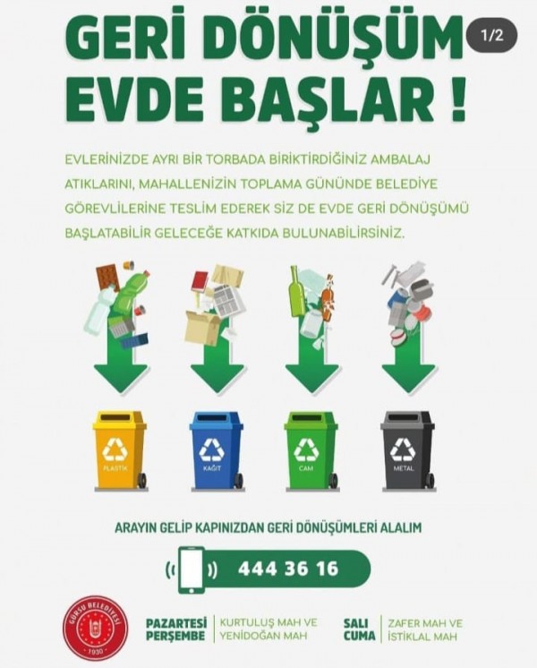 4 Şubat 2023 Cumartesi 2017 yılında ülkemizde başlatılan ‘Sıfır Atık’ hareketine tam destek veren Gürsu Belediyesi yepyeni bir yarışma başlatıyor. Gürsu Belediyesi İklim Değişikliği ve Sıfır Atık Müdürlüğü’nün hamlesi ile Kültür Müdürlüğü bünyesindeki kültürel ve eğlence aktivitelerini ücretsiz bilet uygulaması kampanyası düzenleyerek ilçede ciddi bir algı yaratan Gürsu Belediyesi bu kez de ev hanımlarını projeye dahil ediyor. GüRSU’DA GERİ DöNüŞüM EVLERDE BAŞLAYACAK Gürsu Belediyesi, Sıfır A