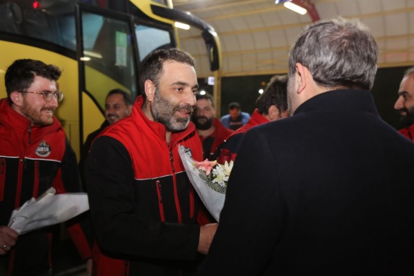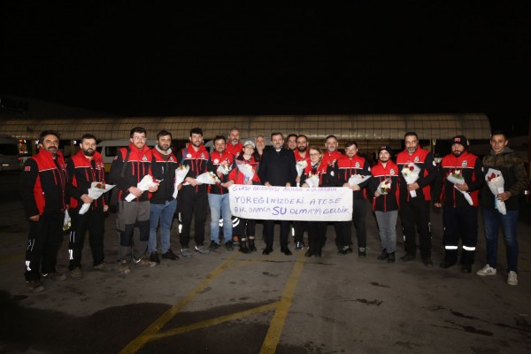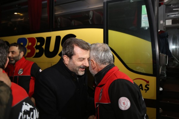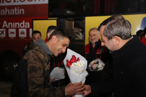 Deprem bölgesindeki arama kurtarma çalışmalarının son bulmasının ardından, görevlerini tamamlayarak Gürsu’ya dönen Gürak (Gürsu Belediyesi Arama Kurtarma Ekibi), Gürsu Belediye Başkanı Mustafa Işık tarafından terminalde karşılandı.
